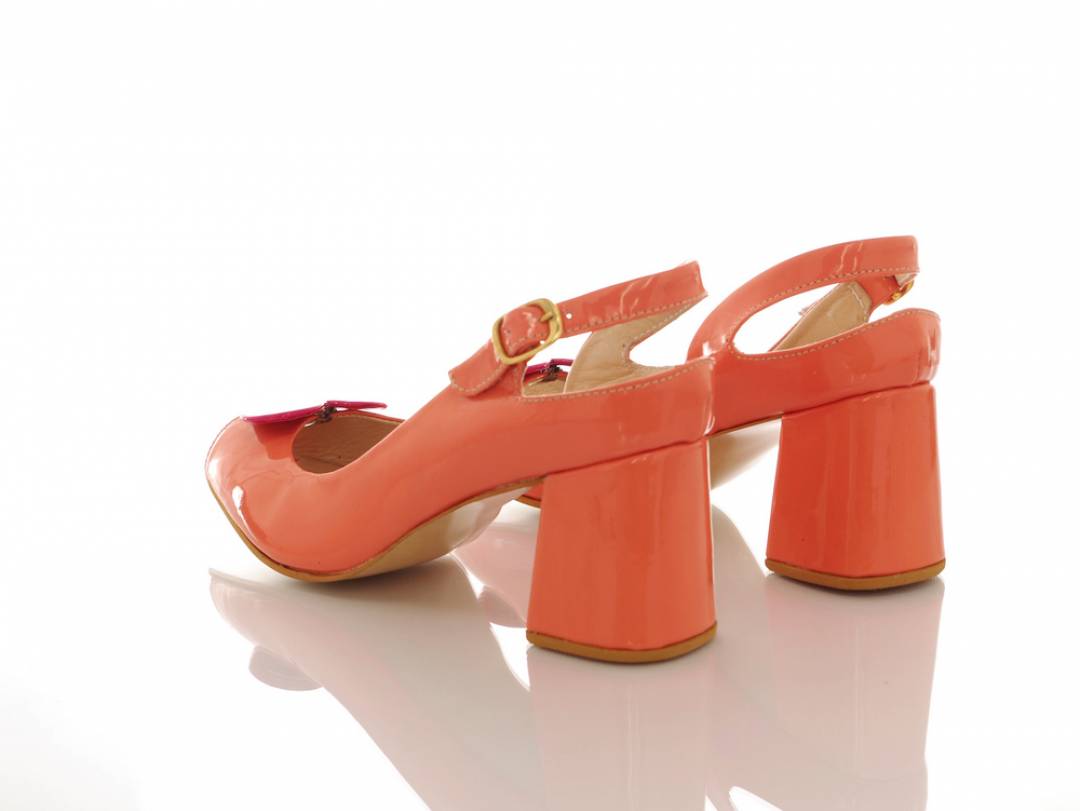 Color: Orange color sandal with removable decoration in heart shape in fuchsia.